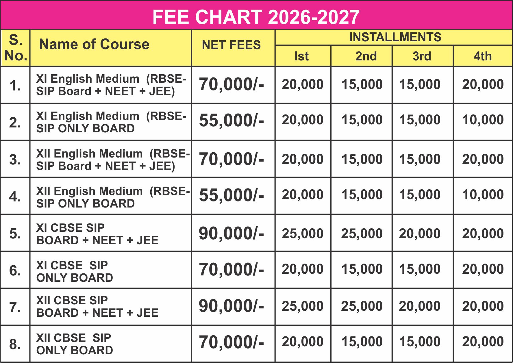 RBSE Fee Structure